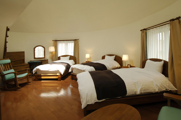 ○ 5人部屋ロフト付きのドーム型コテージ。