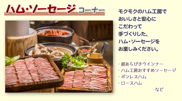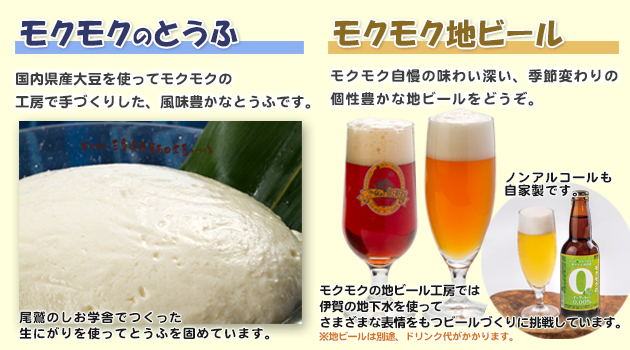 モクモクの工房でつくったハム・ソーセージやパン・地ビール・とうふをはじめ,